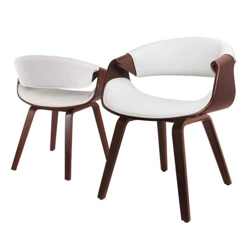 Mid-Century Modern Bentwood Dining Chairs Set of 2 ā Walnut Plywood & White PU Leather Accent Chairs