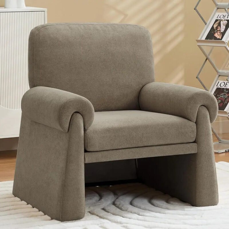 Oversized Chenille Accent Chair ā Grey Armchair with 7-Inch Wide Armrests