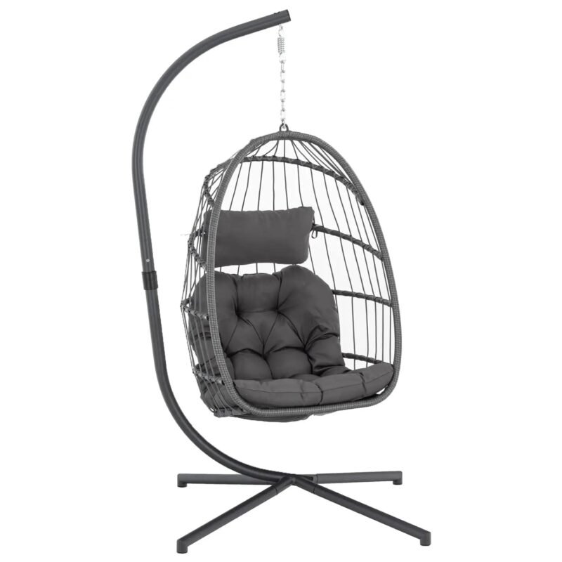 Folding Hanging Egg Chair with Stand ā Portable Wicker Swing for Indoor & Outdoor