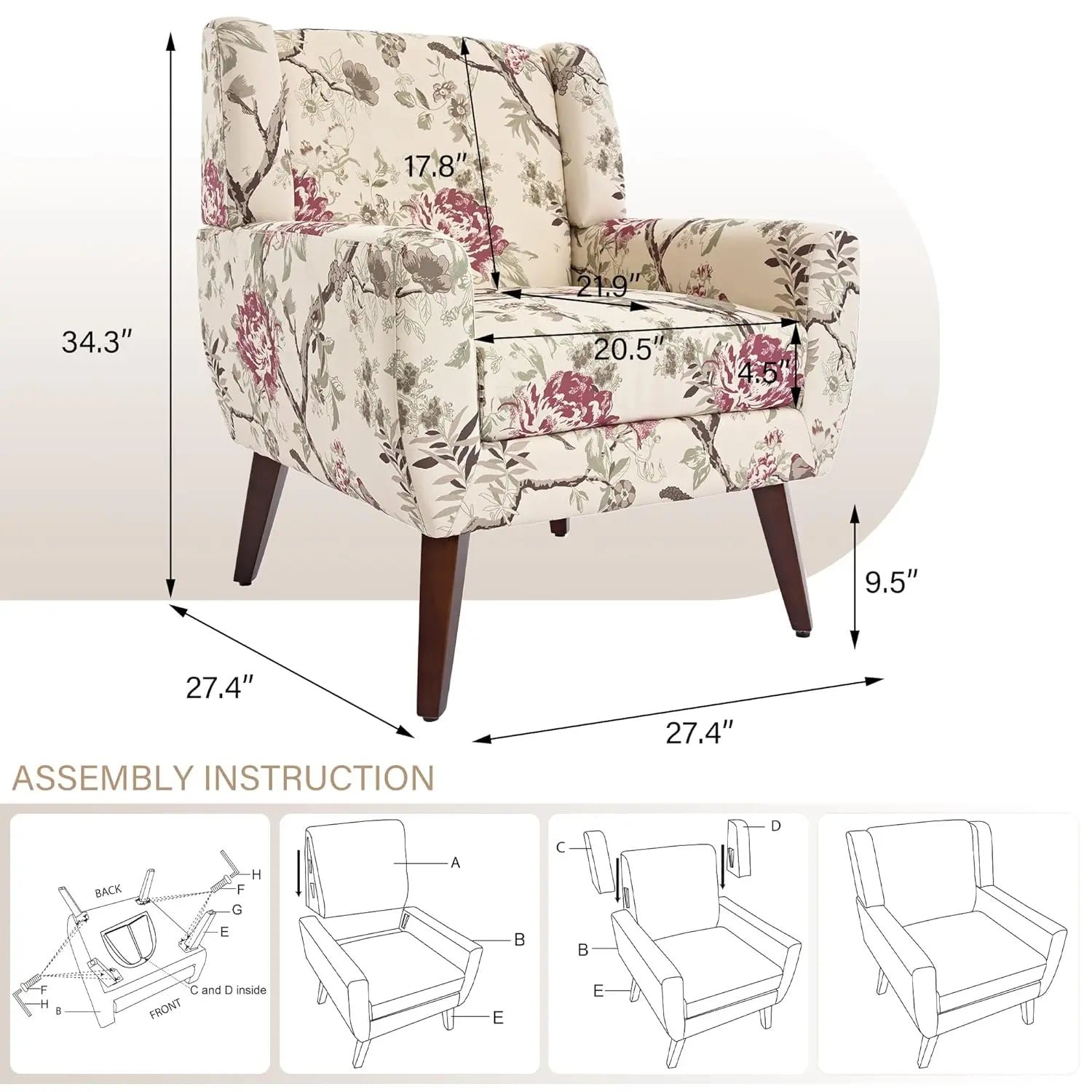 Mid-Century Modern Accent Chair – Button Tufted Upholstered Armchair