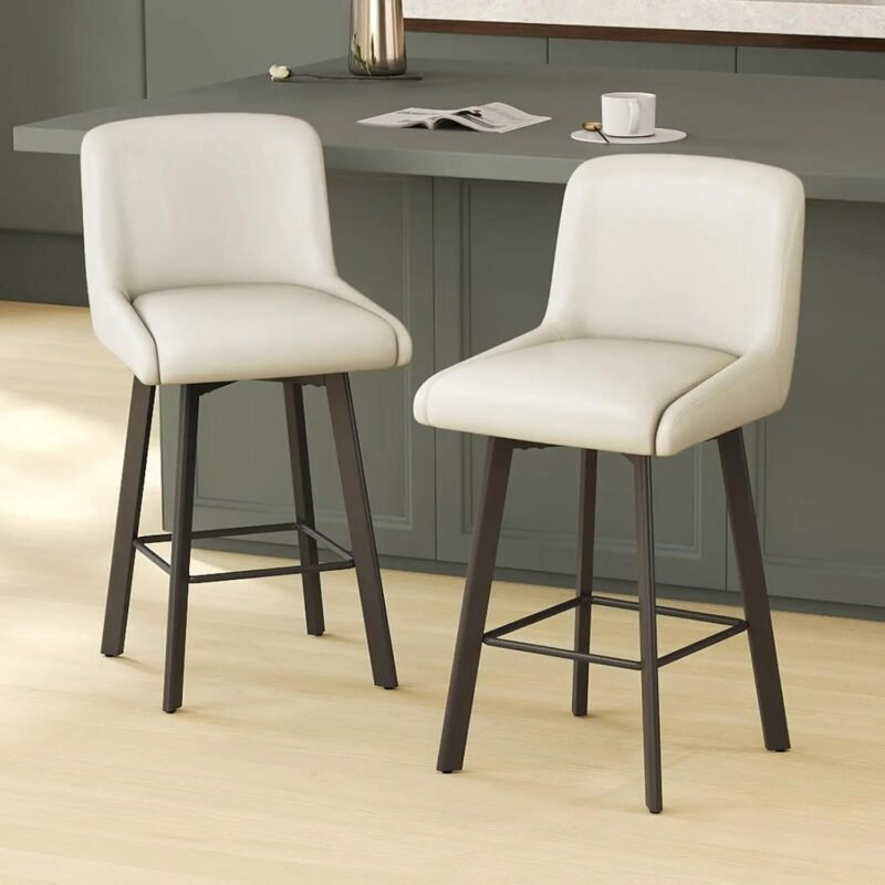 Modern Swivel Bar Stools Set of 2 ā 26″ Counter Height Upholstered Chairs with Widened Metal Legs