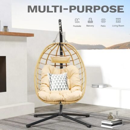 Folding Hanging Egg Chair with Stand ā Portable Wicker Swing for Indoor & Outdoor