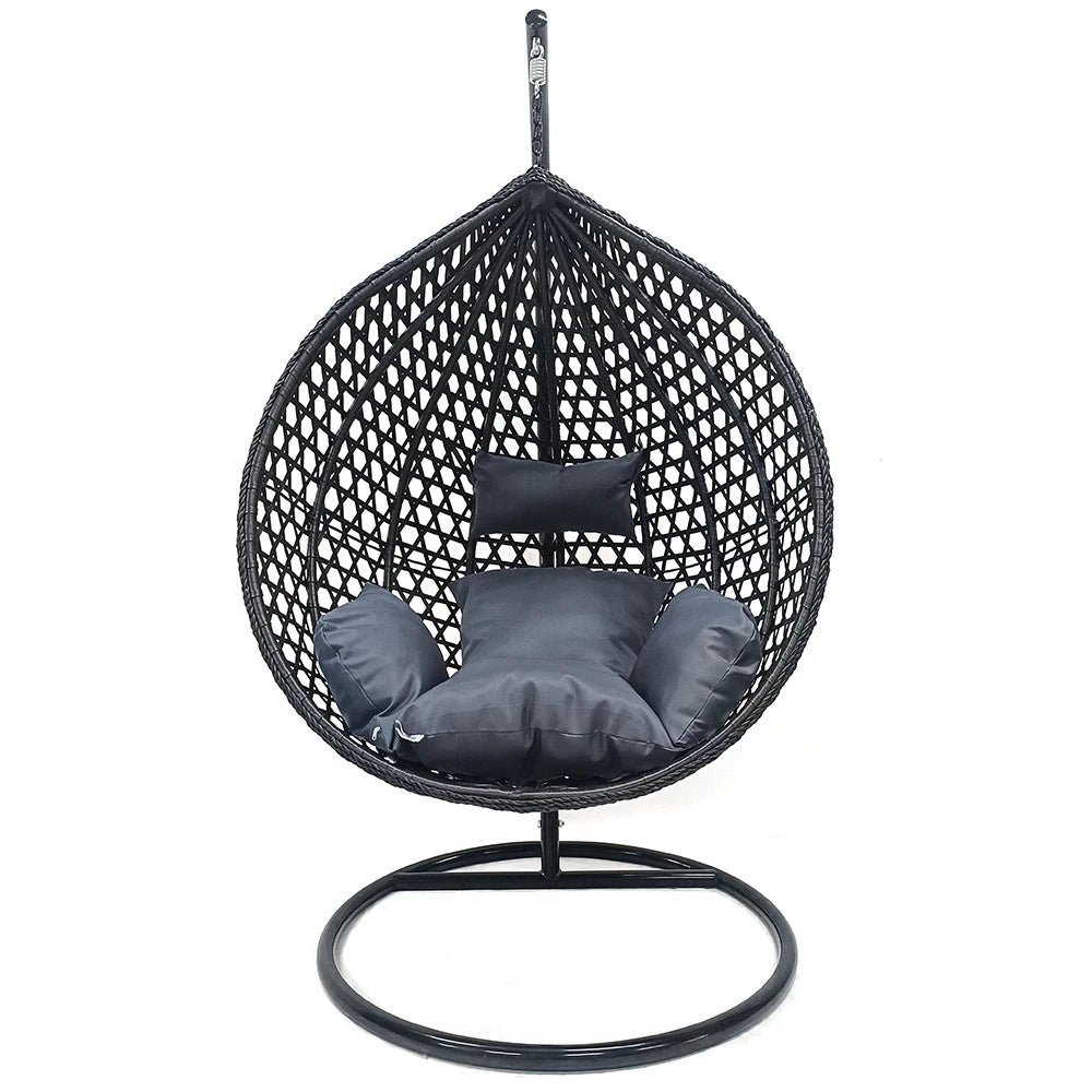 Black Rattan Hanging Egg Chair – Waterproof Outdoor Swing with Heavy-Duty Metal Stand
