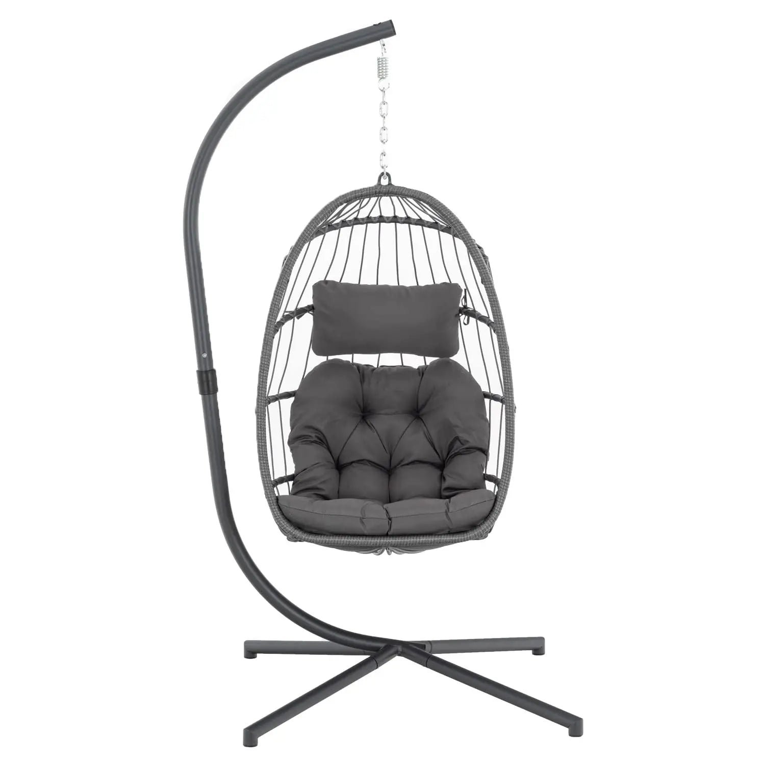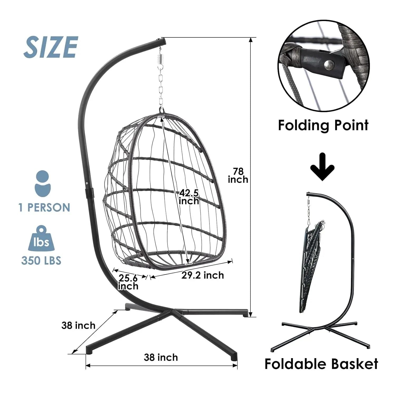 Folding Hanging Egg Chair with Stand – Portable Wicker Swing for Indoor & Outdoor