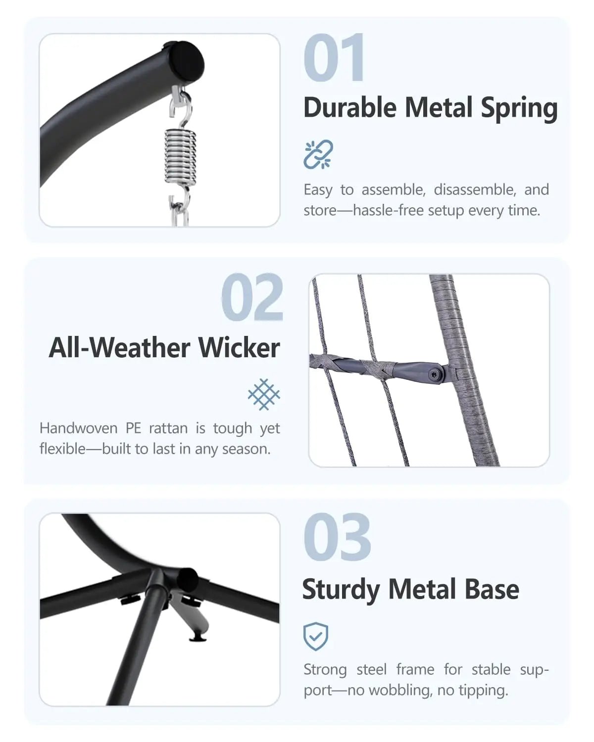 30-Minute Setup: This egg chair is designed for quick, tool-free assembly that a single adult can complete in under half an hour.