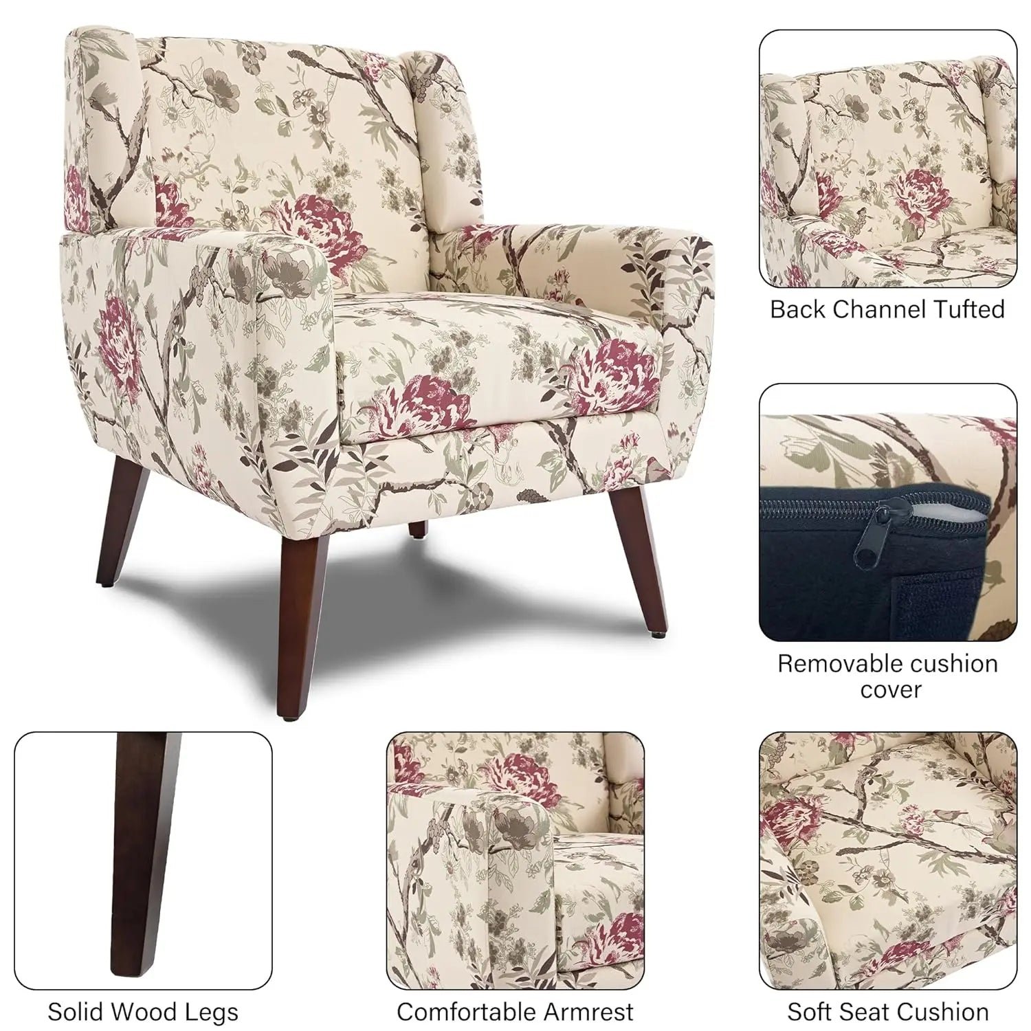 Mid-Century Modern Accent Chair – Button Tufted Upholstered Armchair