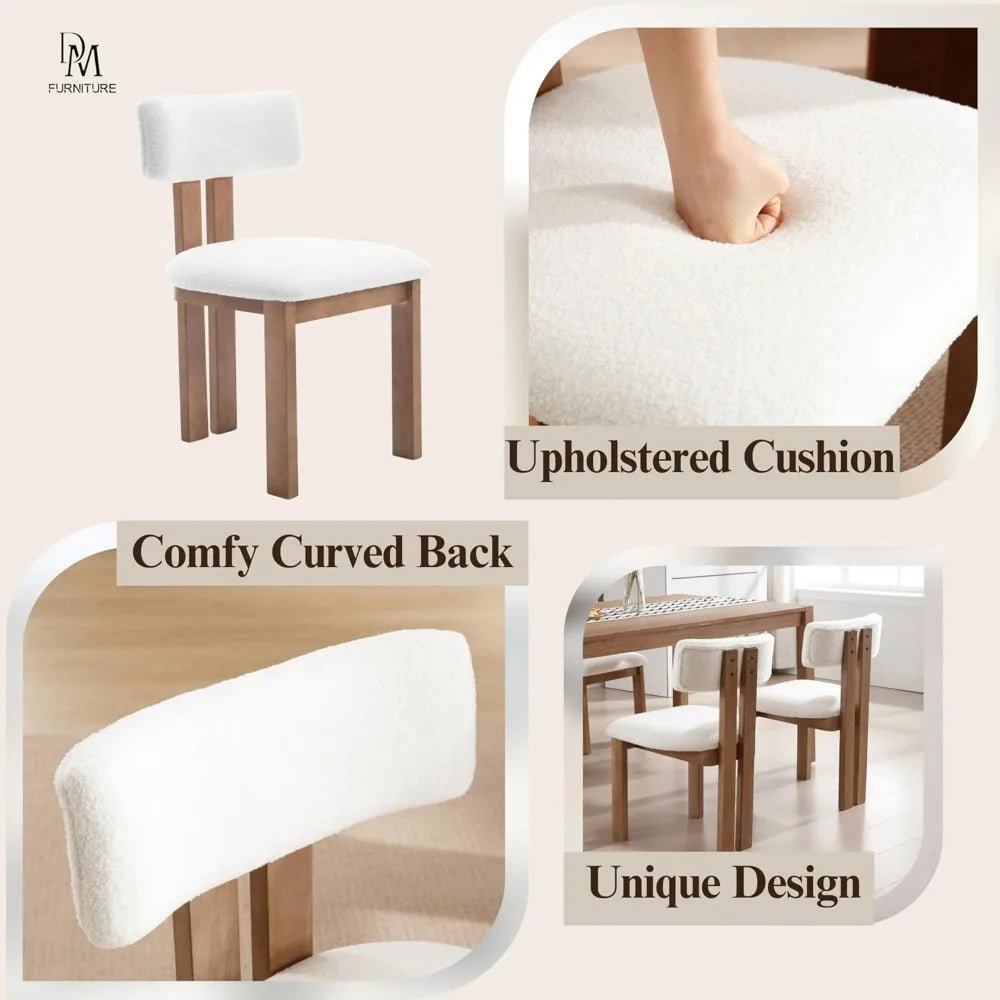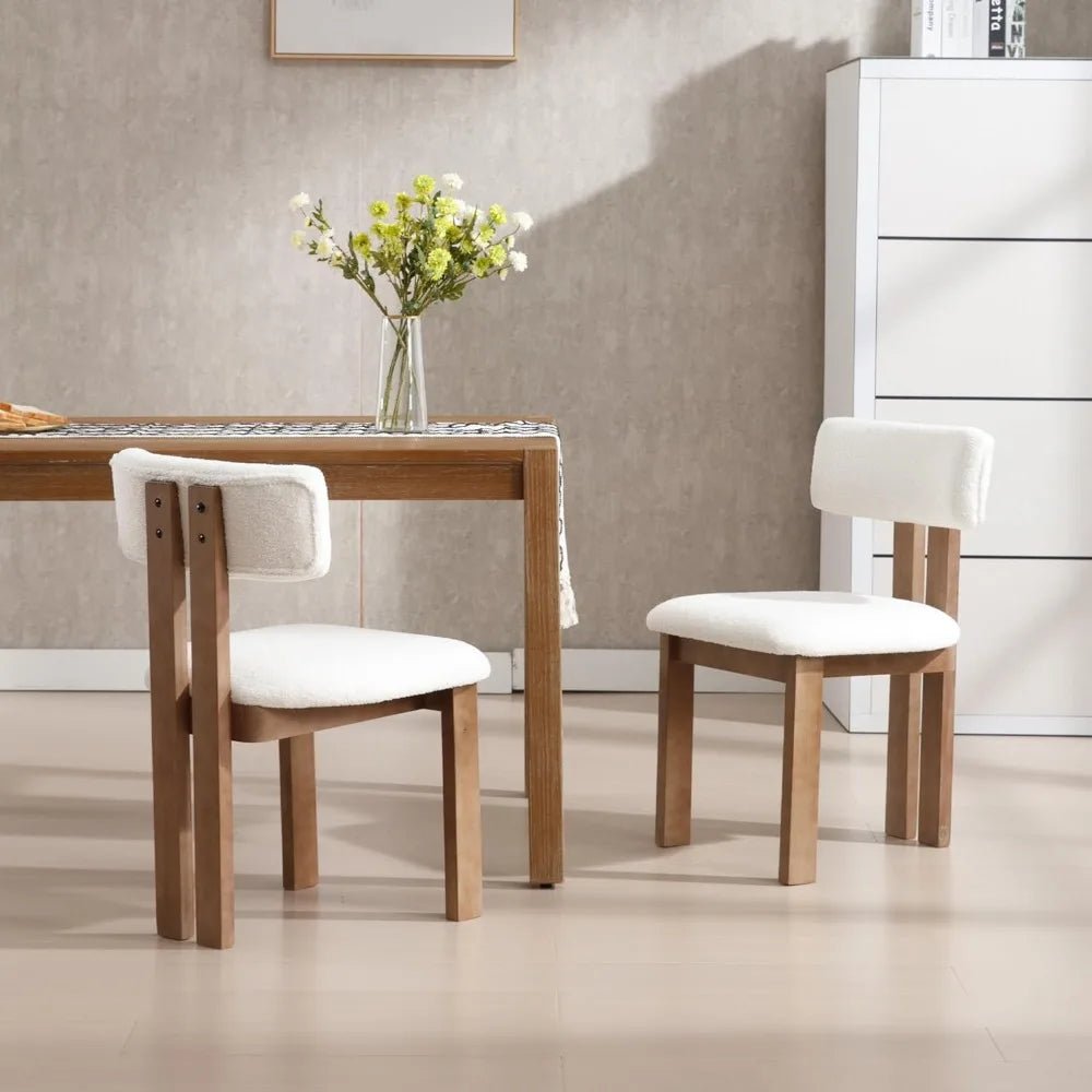 Mid-Century Modern Sherpa Dining Chairs Set of 2 – Open Back Accent Chairs with Distressed Wood Legs