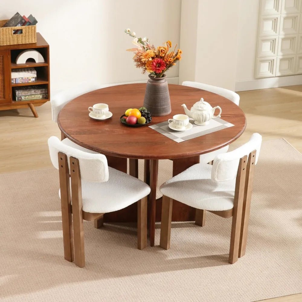Invite classic charm into your home with our Mid-Century Modern Dining Chairs. This set perfectly balances vintage inspiration with contemporary textures, featuring a unique open-back design that adds an airy, sophisticated feel to your dining space. The distressed finish on the solid wood legs provides a rustic, farmhouse-inspired touch that complements both French country and modern minimalist decors.